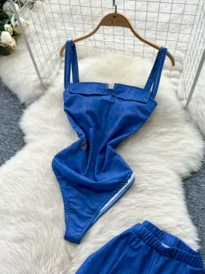 Be the first to review “European and American fashionable sexy suspender waist jumpsuits for women’s design sense splicing high-waisted flared trousers summer two-piece set”