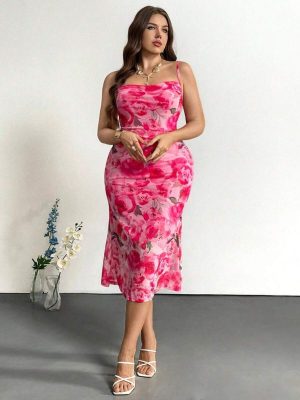 Be the first to review “Firerie Plus Size Elegant Simple Style Allover Printed Pink Cute Date Afternoon Tea Slim Fit Mermaid Midi Dress With Spaghetti Strap, For Summer,Beach Dress Sundress,Holiday Outfits Boho”