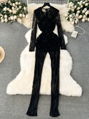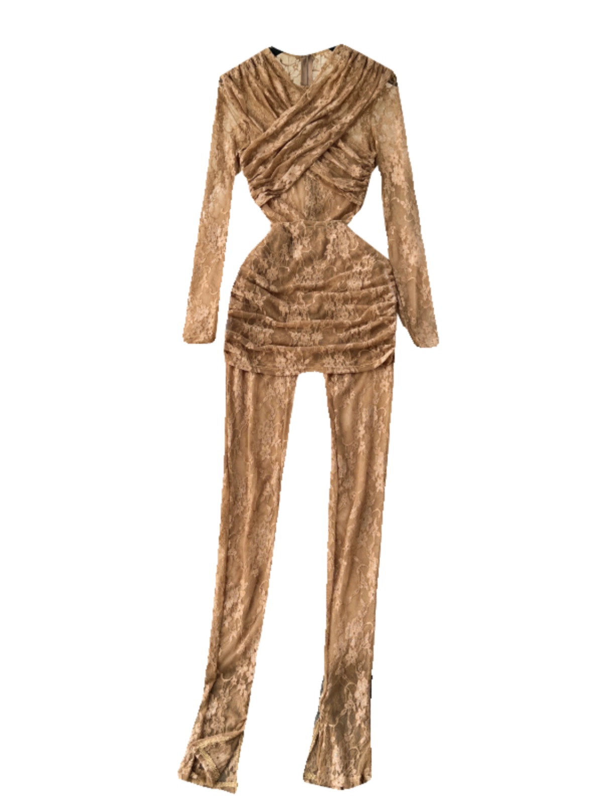 Be the first to review “Foreign V-neck lace long-sleeved leggings suit”