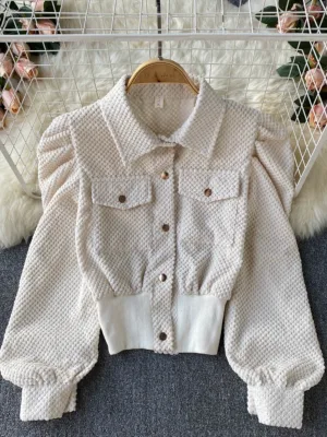 Korean style design corduroy short lapel jacket for women long-sleeved top trendy