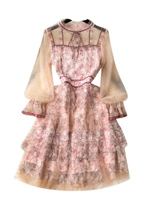 Retro printed round neck fla...