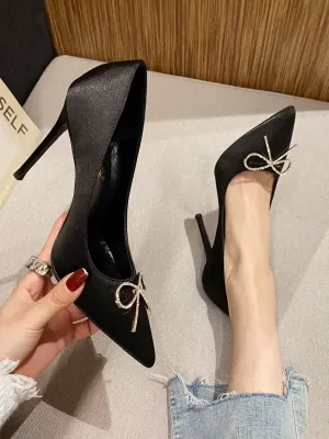 Be the first to review “Small size 313233 pointed toe thin heel satin high heels large size 41-43 comfortable temperament sexy bow shoes”